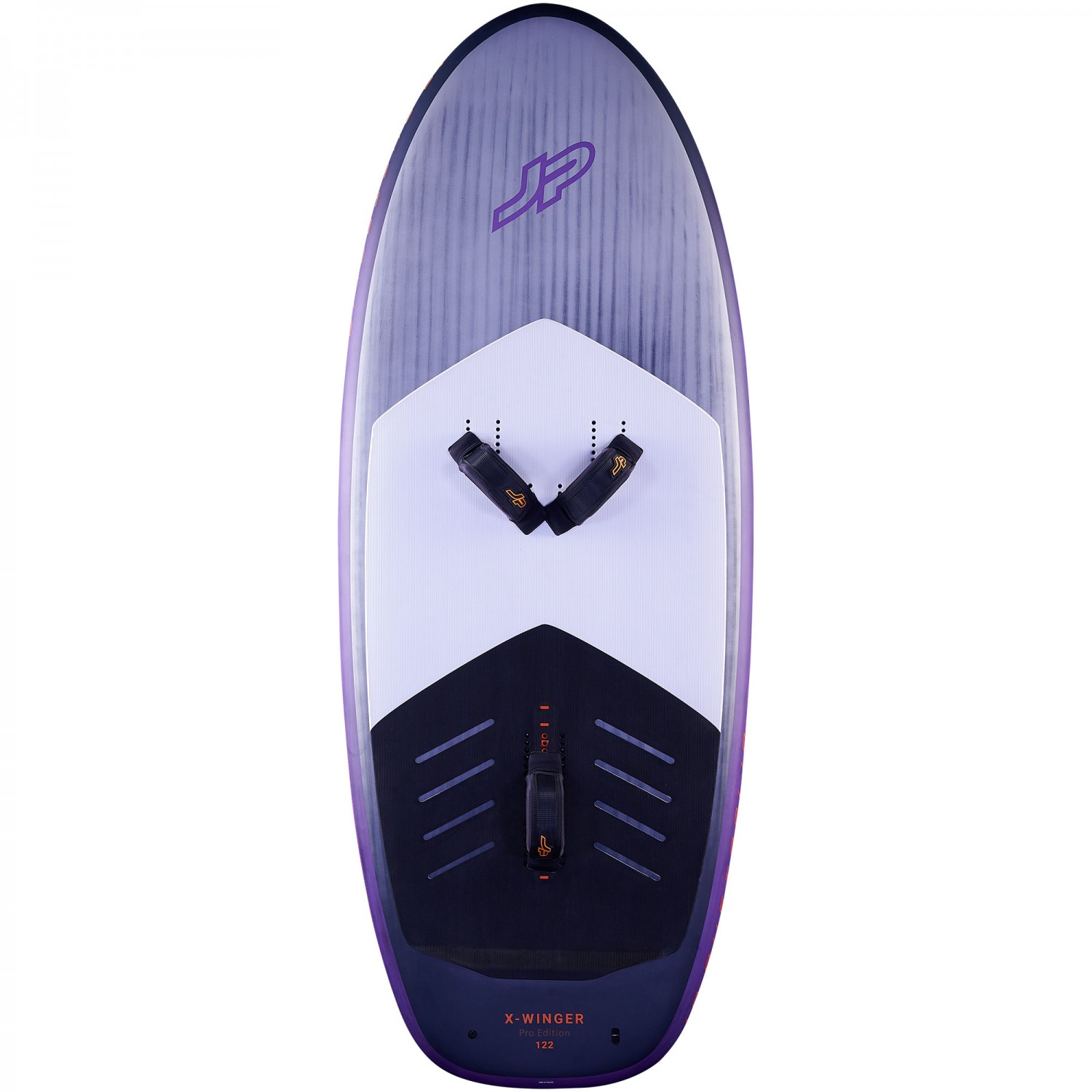 The compact size and step tail offer the perfect platform for getting an instant reaction to pumping. Loading the wing under water and using the lift of the wing for take-off. The concave deck shape is equipped with a comfortable pad and additional increased arch and tail kick pad supporting and guiding the foot in the perfect position when riding strapless. The footstrap options offered, cover everything from V-shape to off-centered positions.