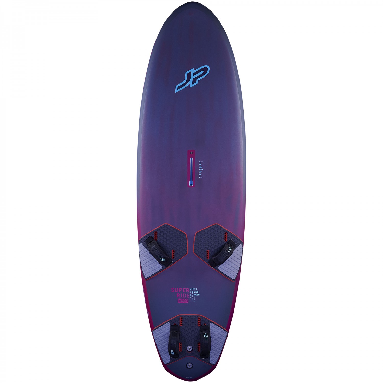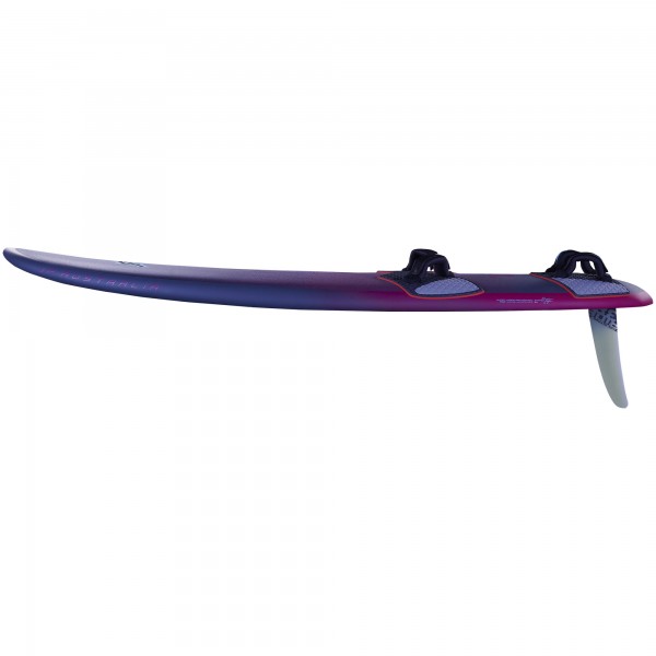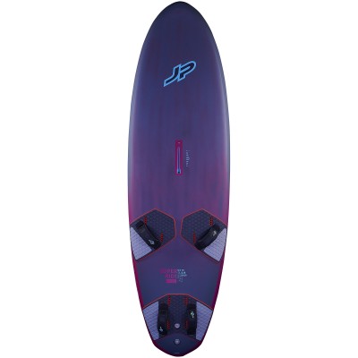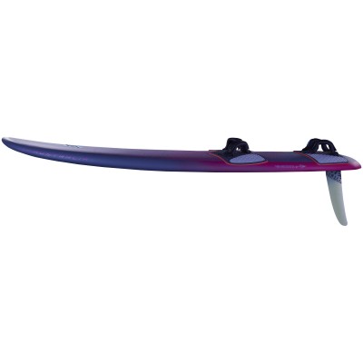 The Super Ride features a wider tail and overall width, creating a stable platform with a big planing area. This design, combined with an efficient rocker line, supports early planing and ensures smooth performance in different conditions. The shape reduces drag and improves efficiency, allowing the board to plane in a higher water position for a smooth ride and consistent control, even in choppy water. This balance of stability and responsiveness enables confident acceleration and high-speed windsurfing.